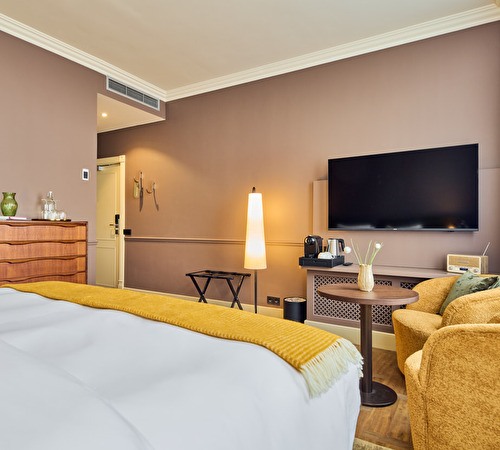 Sommige kamers hebben een Frans balkon, uitzicht op de binnentuin of zelfs een privéterras. Zo beleef je het hotel in het centrum van Den Haag op zijn meest ontspannen manier.
